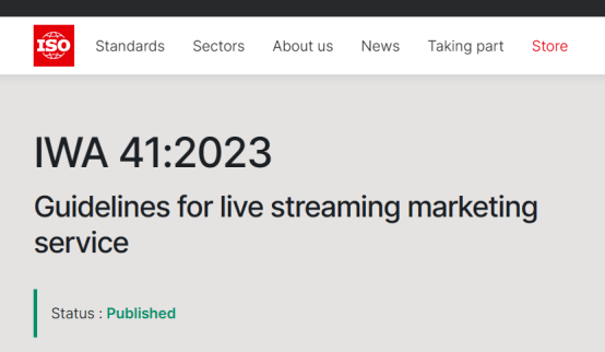 11月27日,國際標準化組織(ISO)正式發布國際標準《直播營銷服務指南》(ISO/IWA 41:2023),這是全球首個直播營銷國際標準。業界廣泛認為,該標準的發布與實施將有力促進直播營銷服務模式的推廣和可持續發展。