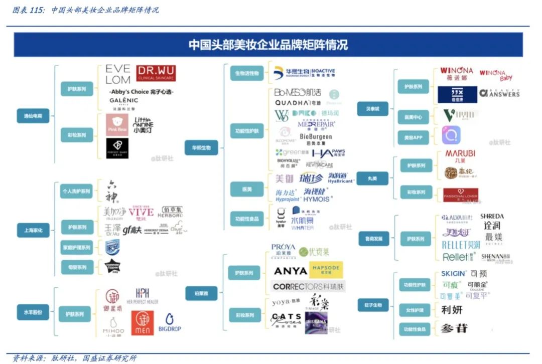 根據國盛證券最新梳理,目前頭部國貨美妝企業大多處于從單品牌走向多品牌的摸索階段,在利用自身核心資源壯大主品牌的同時,完備產研體系及中后臺運營架構以賦能多品牌。