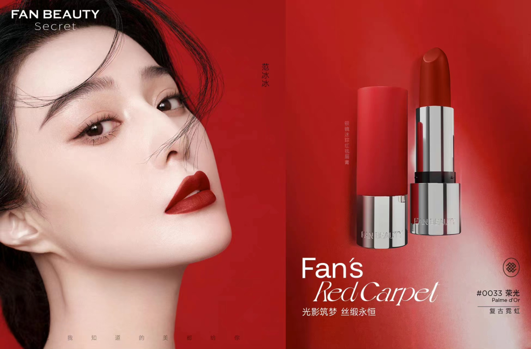 11月初,范冰冰自創美妝品牌Fan Beauty Secret連續幾天在官博發布彩妝產品物料,首款產品名為銀鏡迷蹤紅毯唇膏。目前Fan Beauty官方店鋪已經上線該款口紅,共有三個色號分別為榮光、濃情、少女,預售價為152元/支,目前已預定1000+。
