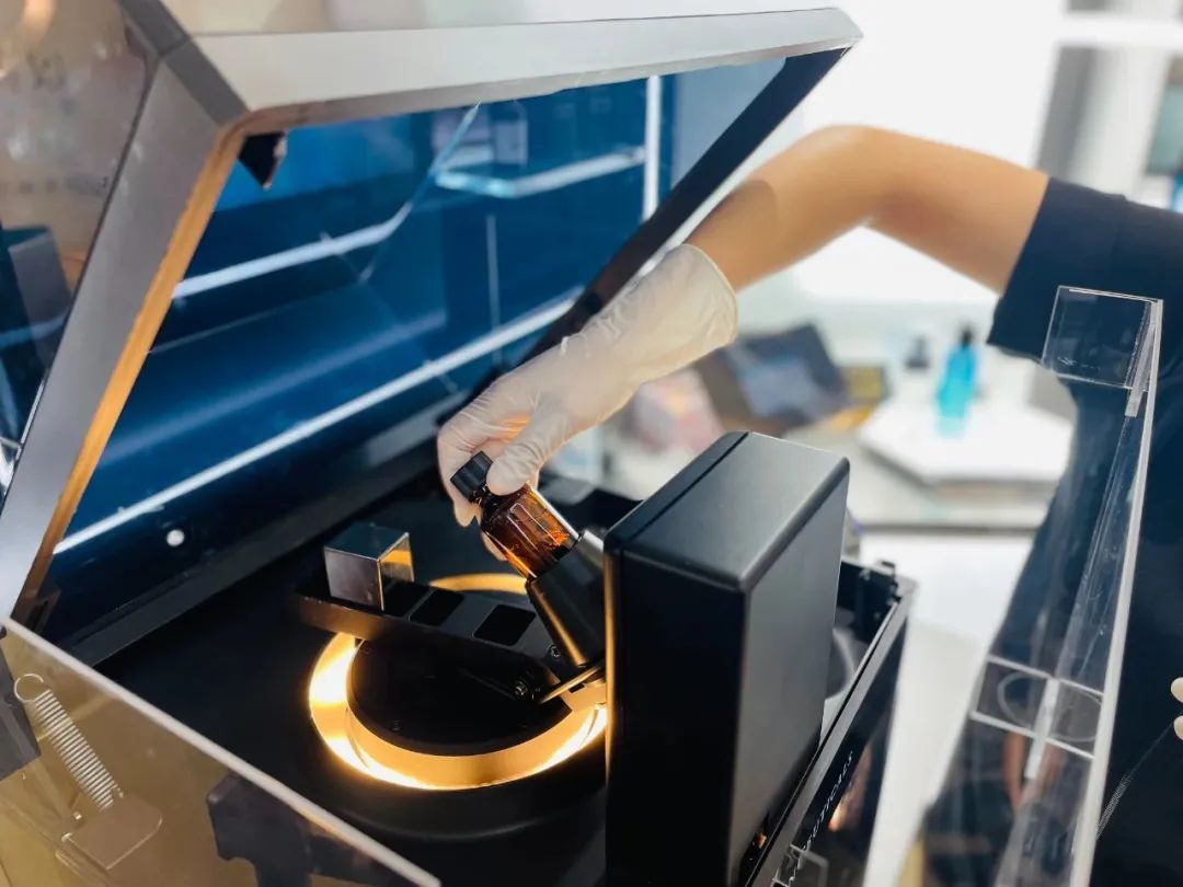 提供現場個性化服務的“迷你工廠”,其核心為一臺黑色迷你生產臺。別看它外觀方方正正,如同一臺打印機,內部科技含量十足。這臺調配儀內裝有8種不同的預制配方,可實現現場加料、調配,配方組合可達數十種。