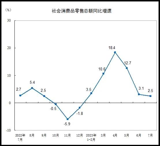 今日(8月15日),國家統計局公布了2023年7月份社會消費品零售數據。7月社會消費品零售總額為36761億元,同比增長2.5%。1-7月份,社會消費品零售總額為264348億元,同比增長7.3%。